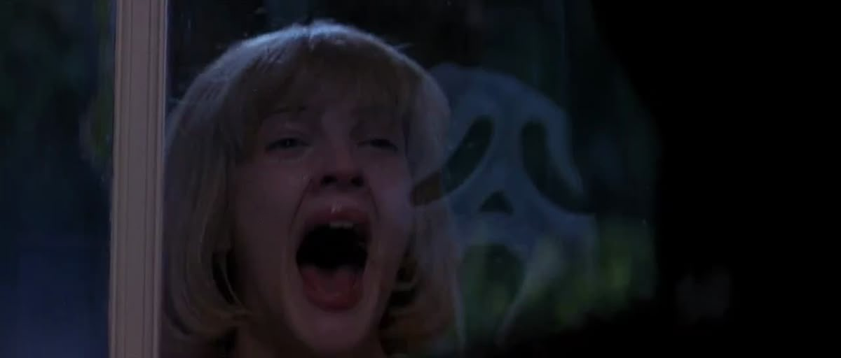 The Opening Scene as a Test: The first sequence with Drew Barrymore is not just memorable because of how it ends. It is a direct reference to When a Stranger Calls, with the setup of a girl alone, the phone ringing, and the caller already inside the world of the house. It announces from the start that the movie is aware of its lineage and expects at least some of its viewers to recognize what it is borrowing.